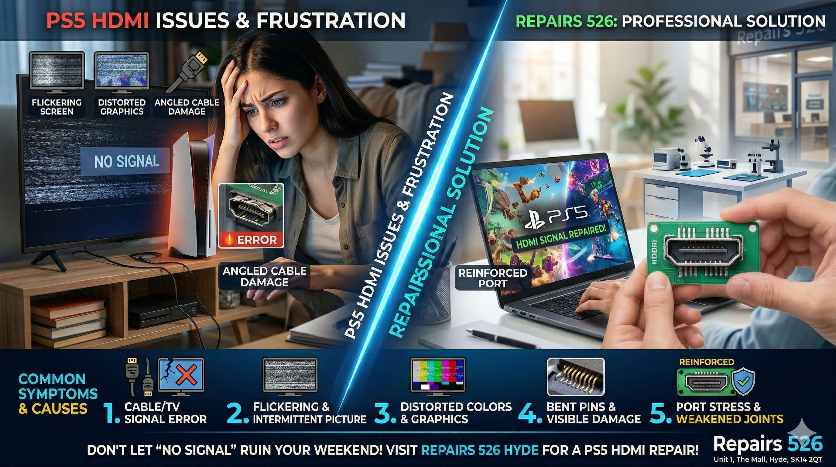 You finally have a few hours to sit down and play your favourite game. You boot up your PlayStation 5, the blue light pulses, it turns solid white but your TV screen stays completely black. Then, the dreaded message appears: “No Signal.” If your PS5 is turning on but not displaying a picture, you are not alone. This is one of the most common hardware issues gamers face today. In